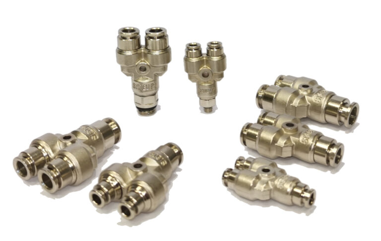 • Raccords pneumatiques : raccords instantanés pour air comprimé en laiton, acier inoxydable 316L et technopolymère, raccords rapides et raccords à ogive.